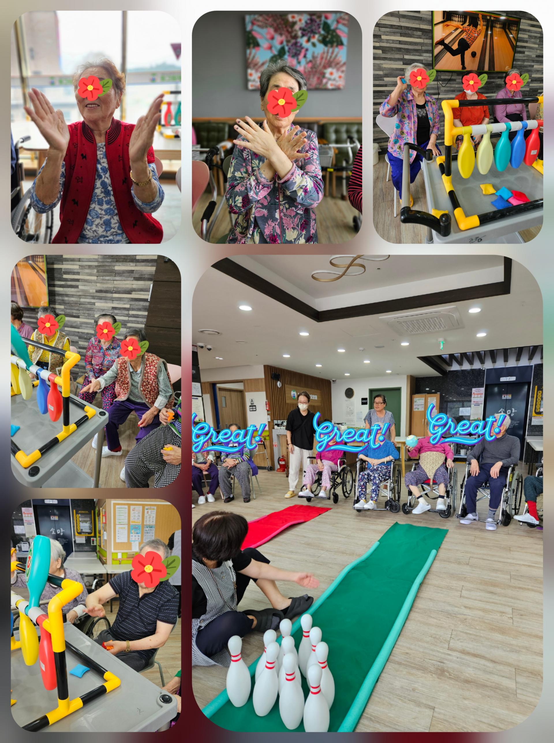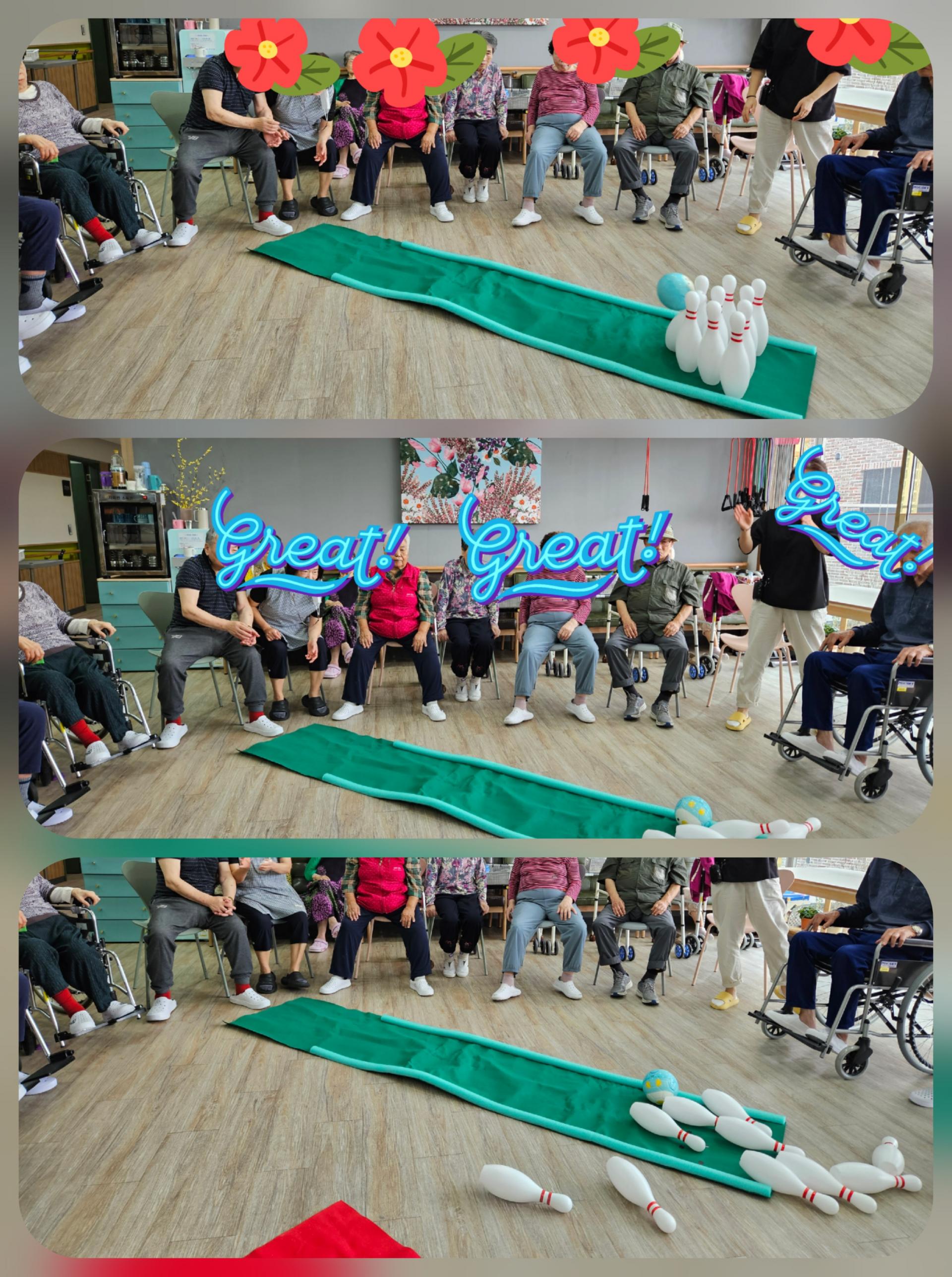 어르신들이 볼링 게임을 통해 얻는 신체적 효과는 근력 강화, 균형 감각 향상, 심리적 안정감 등을 얻게 됩니다.