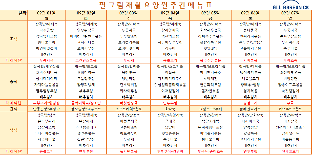 9월 1주 식단표