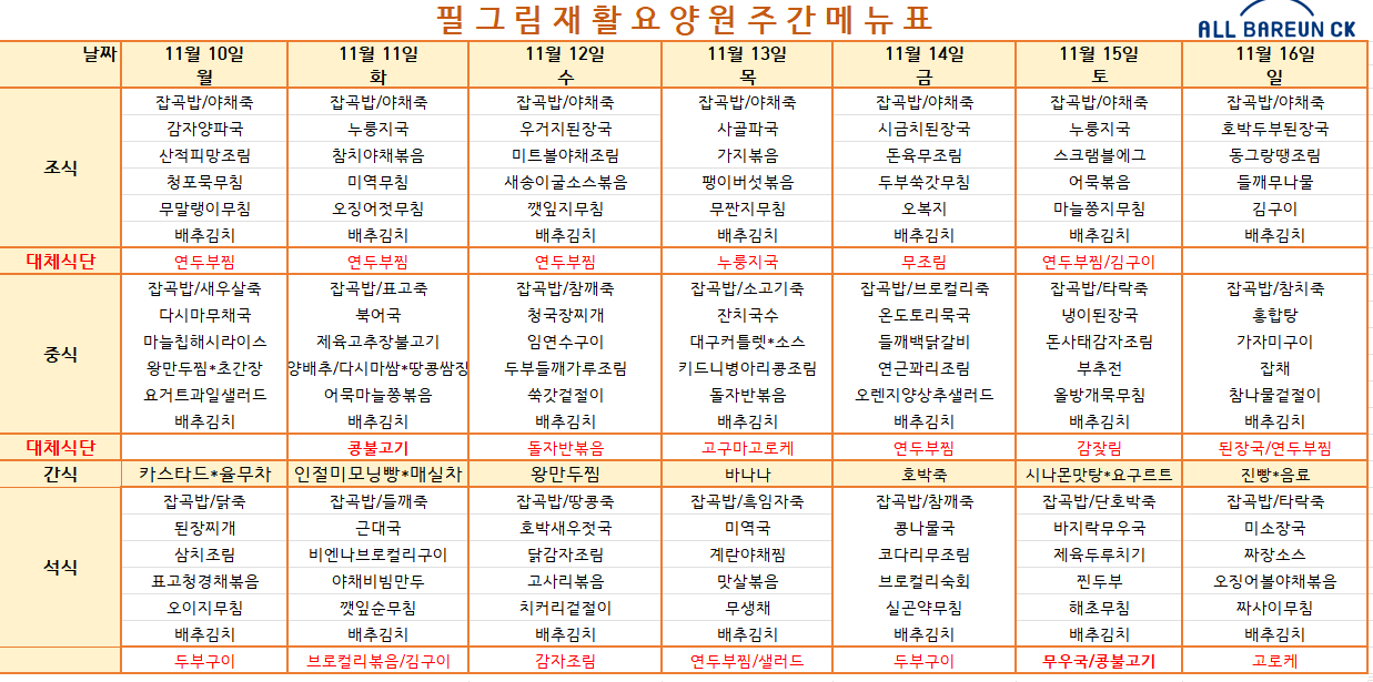 11월 1주 식단표